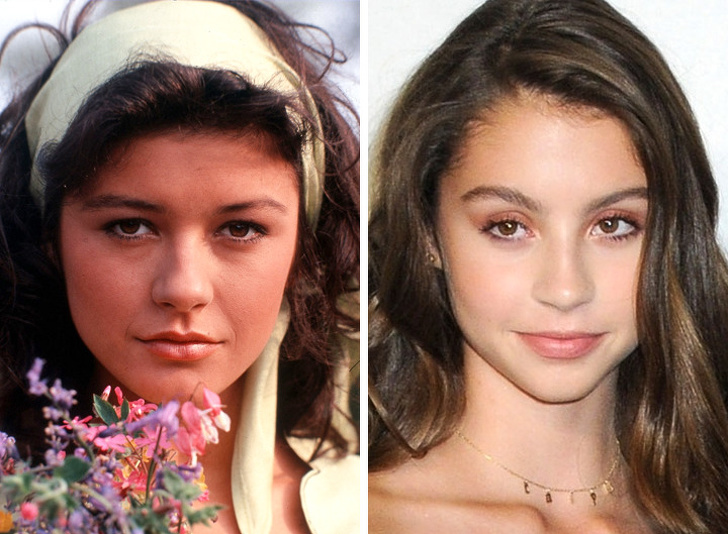 Популярная актриса нравится многим не только своим талантом и харизмой, но и необычайно яркой внешностью, которую теперь унаследовала ее дочь. Кэтрин и Кэрис редко совместно выходят в свет, однако каждый их выход широко освещается СМИ, отмечая их невероятную схожесть. Если сравнить их фото в одном возрасте, то достаточно тяжело распознать кто есть кто.