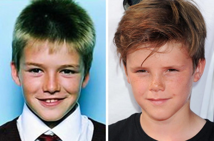 У четы Бекхэм много детей, но только Круз является точной копией отца в детском возрасте. Мальчик так похож на своего звездного папу, что на фото, сделанных в школьные годы, их практически невозможно отличить.